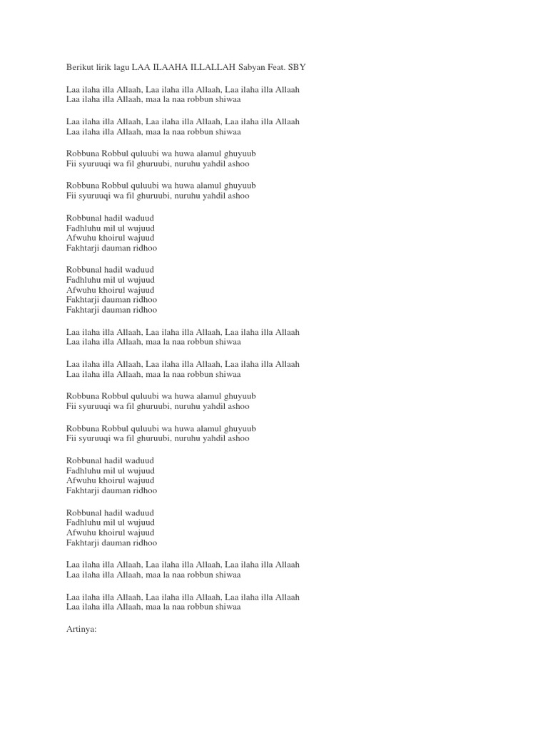 Lirik Lagu Laa Ilaaha Illallah Sabyan Feat Pdf